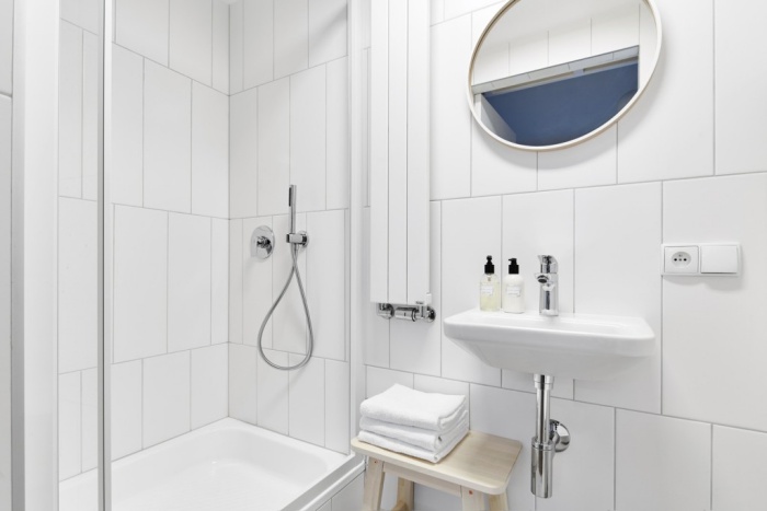 tắm. Việc sử dụng các vật liệu màu trắng tạo cảm giá không gian rộng thoáng hơn rất nhiều.