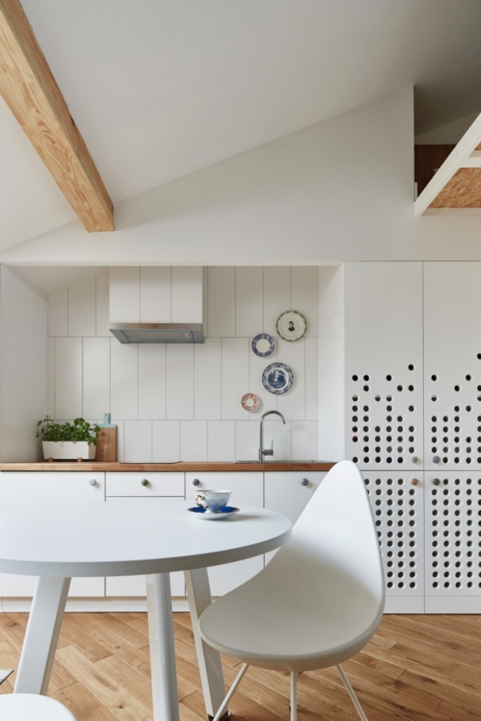 Căn hộ nhỏ xinh dưới đây của cặp vợ chồng trẻ nằm ở tầng gác mái với diện tích chỉ vỏn vẹn 19m2. Với khoảng không gian hạn chế như vậy, nhiều người thường sử dụng để bố trí nhà kho hay một căn phòng chức năng nào đó. Tuy nhiên, căn hộ gác mái này thì khác. Không gian thoáng sáng, hiện đại của nó cho phép cặp vợ chồng trẻ bài trí nội thất với đầy đủ chức năng phù hợp cho cuộc sống hàng ngày. Mỗi góc nhỏ đều được bài trí một cách tỉ mẩn giúp căn hộ nhìn từ bất cứ góc nào cũng đẹp miễn chê.